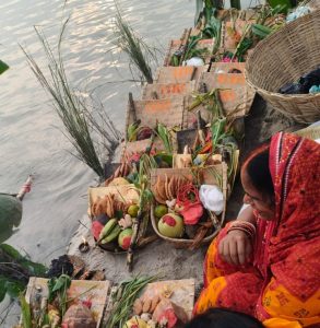 तीन दिवसीय लोक आस्था के छठ महापर्व पर डुबते हुए सुर्य के लोगों ने दिया अर्घ्य