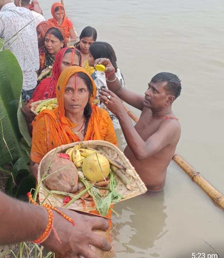 खगड़िया। जिले के विभिन्न क्षेत्रों में तीन दिवसीय लोक आस्था का पर्व छठ महापर्व पर लोगों ने डुबते हुए सुर्य को अर्घ्य दिया। मानसी के विभिन्न क्षेत्रों के विभिन्न घाटों पर जहाँ लोक आस्था का छठ महापर्व धुमधाम से मनाया गया वहीं कई जगहों पर विभिन्न घाटों पर साफ सफाई रौशनी का प्रबंध करते हुए लोगों ने घाटों को दुल्हन की तरह सजाया। वहीं मानसी के मटिहानी घाट को सुरक्षा के दृष्टिकोण से जिला प्रशासन द्वारा प्रतिबंध लगा दिया गया। जिसके कारण कई लोगों ने घर पर ही छठ महापर्व को मनाकर डुबते हुए सुर्य को अर्घ्य दिया। जबकि राजाजान घाट पर मां कत्यानी छठ पूजा सेवा समिति द्वारा छठ माता एवं सुर्यदेव भगवान् का प्रतिमा स्थापित किया गया वहीं घाटों को भी दुल्हन की तरह सजाया गया। इस दौरान रेल राजकीय पुलिस मानसी के पुलिस बल सुरक्षा ओर सेवा में रेलवे फाटक पर सेवा देते नजर आये , इस दौरान रेल राजकीय थानाध्यक्ष विकास कुमार सिंह अपने पुलिस बल के साथ डयूटी पर मुस्तैद दिखे। वहीं मानसी के स्थानीय थाना पुलिस भी एन एच एकतीस सड़क मार्ग के विभिन्न चौराहे पर डयूटी पर तैनात दिखे। हलाकि राजाजान घाट पर एक भी ना तो पुलिस कर्मी मौजूद थे ना ही डयूटी पर लगाये गये मजिस्ट्रेट मौजूद थे। ना ही एक भी अंचल कार्यलय द्वारा तैनात कोई भी तैराक मौजूद थे।