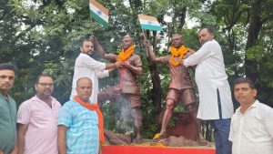 अमर शहीद धन्ना- माधव के जयघोष की नारे के साथ मनाया गया शहादत दिवस, शहीद प्रभु नारायण को भी किया गया याद